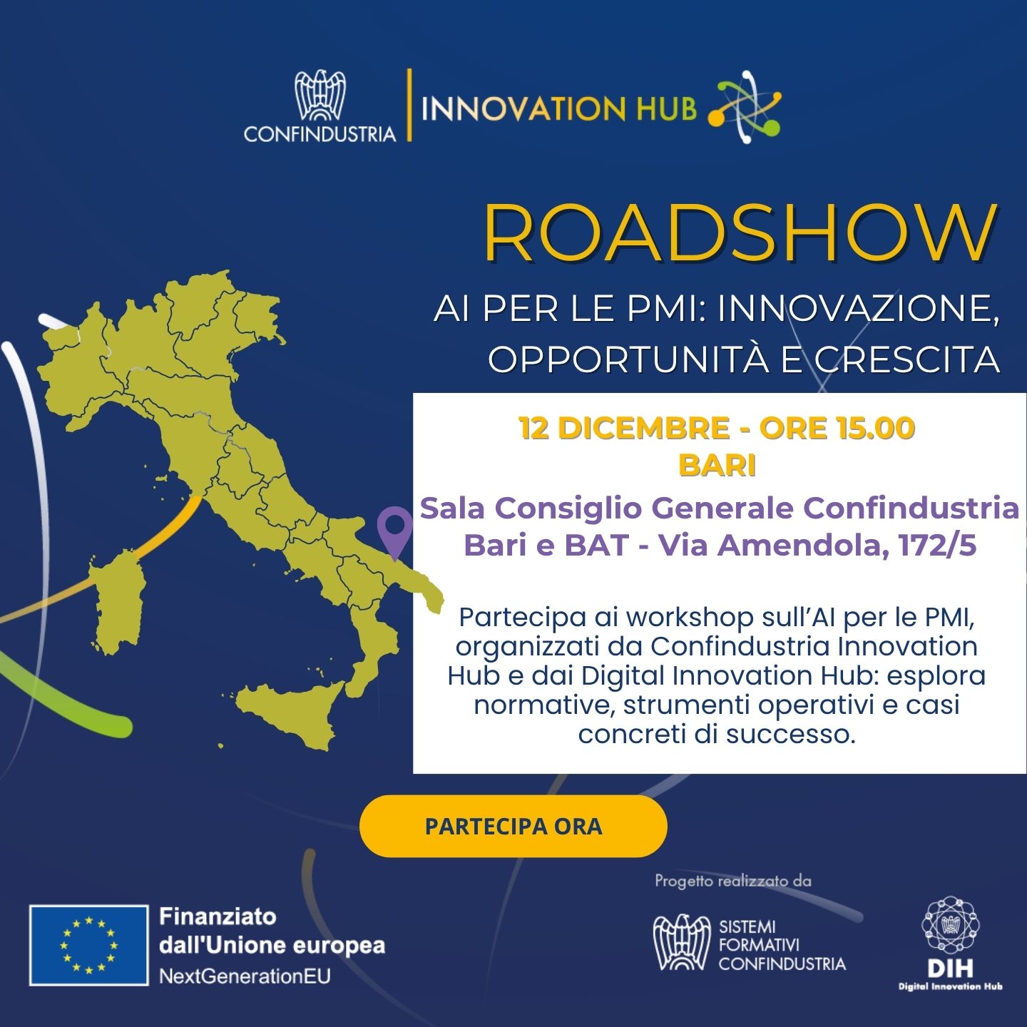 L’AI corre veloce e le imprese pugliesi non vogliono restare a guardare: il Roadshow di Confindustria Innovation Hub arriva a Bari